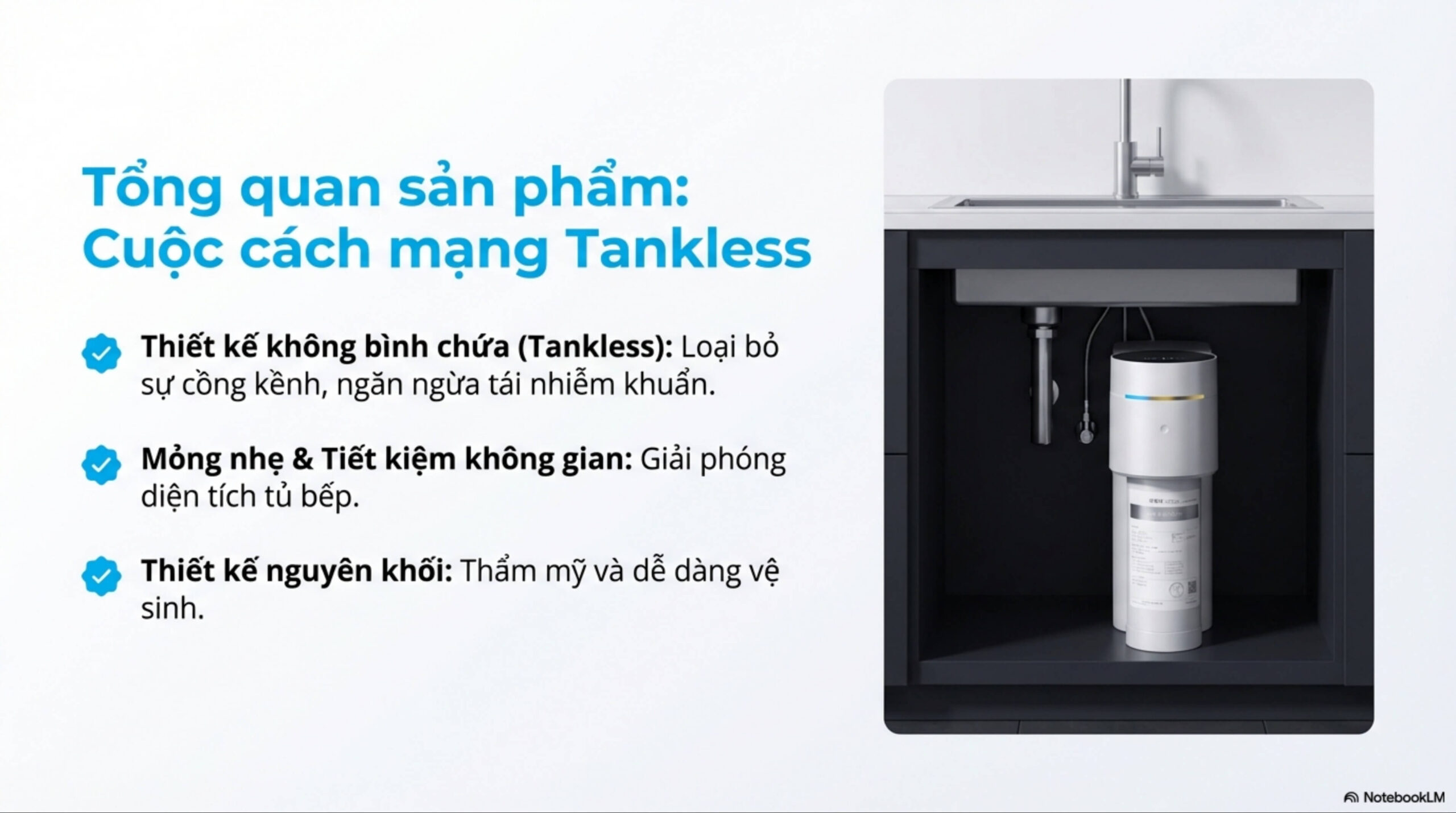 + Thiết kế không bình chứa siêu mỏng, nhỏ gọn, tối ưu không gian lắp đặt
