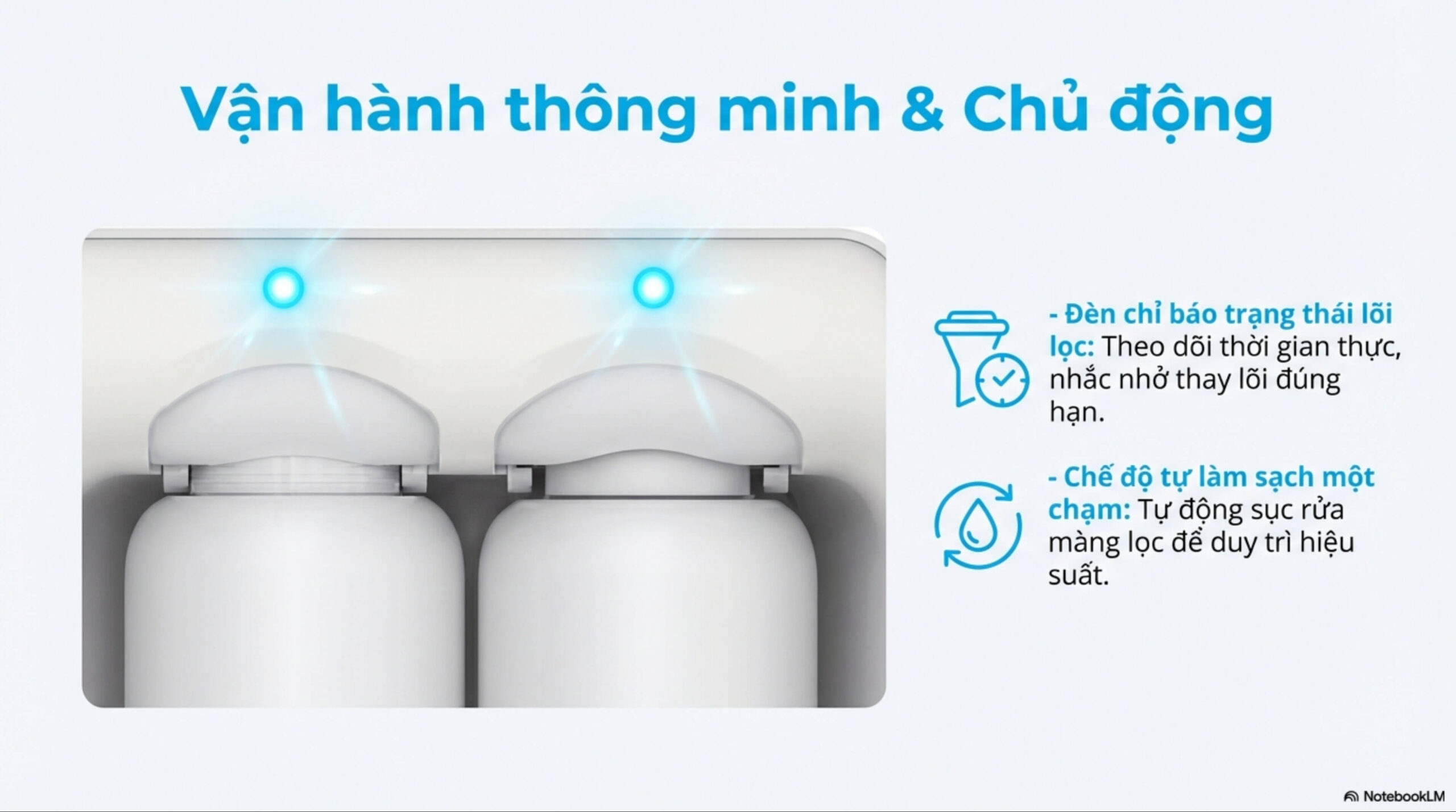 + Hệ thống cảnh báo thay lõi thông minh, dễ dàng theo dõi và bảo trì