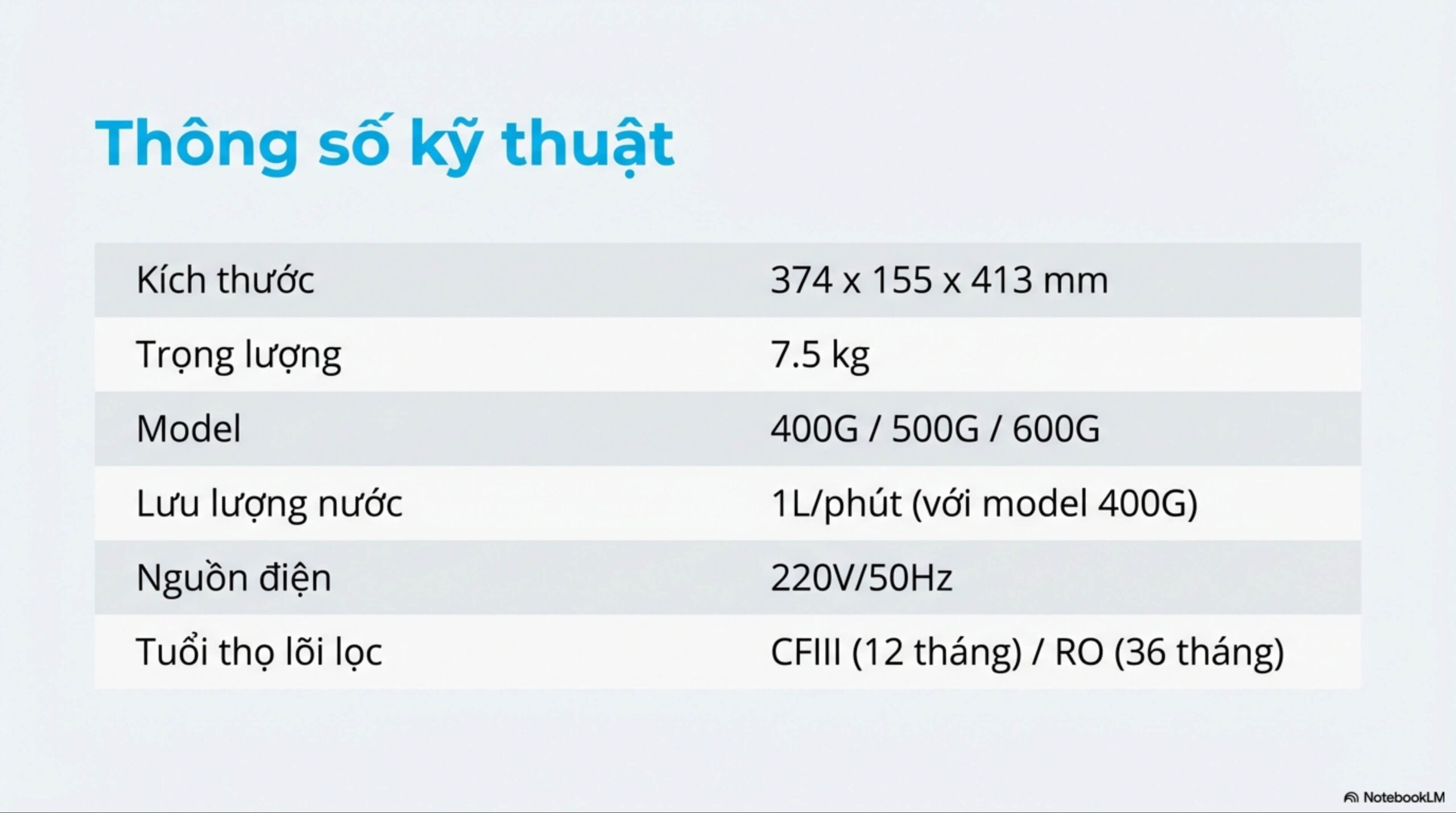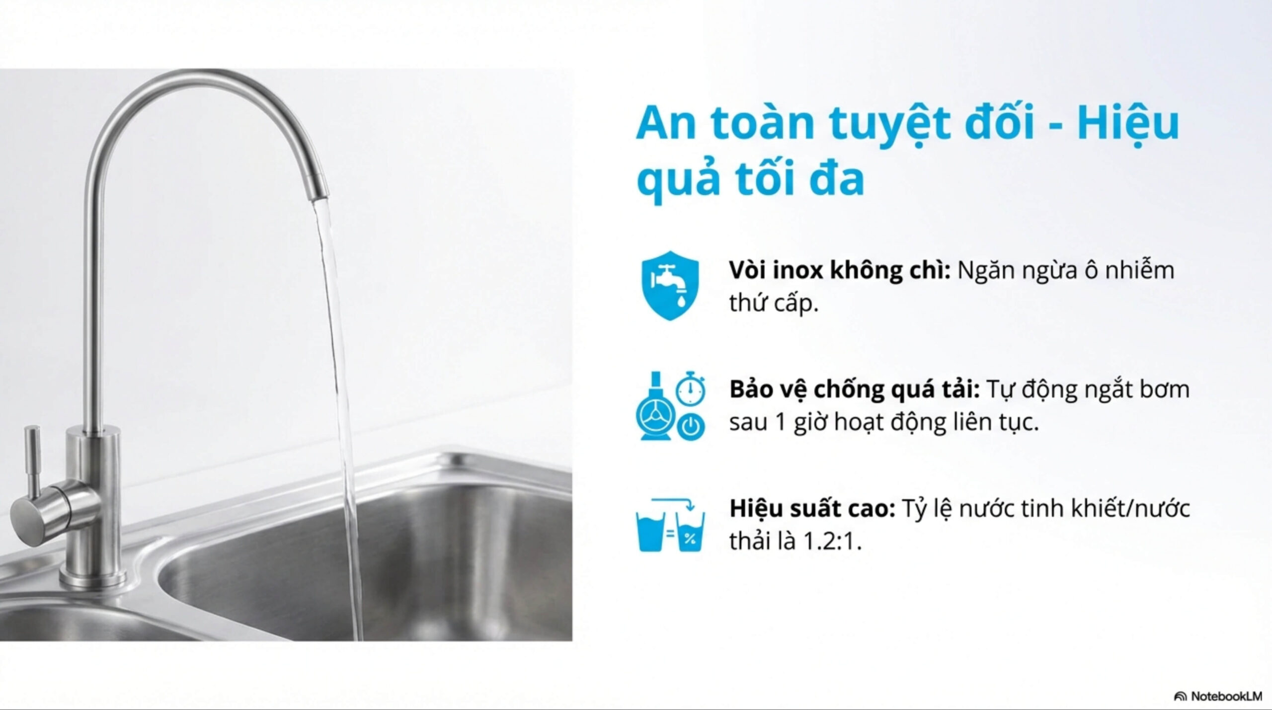 | Nguồn nước áp dụng | Nước máy |